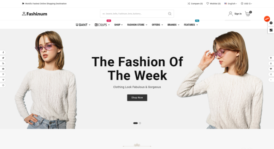 Here is Rich type of features that we used in FASHINUM. See and check out what you get with our Templates.
