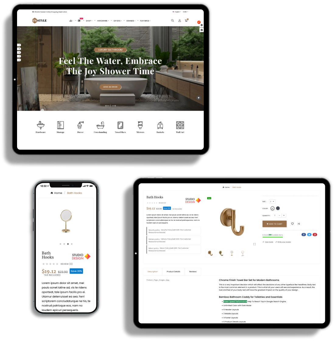 INSTYLE is fully responsive, adapt the device size, pixel perfect and all elements look beautiful in all standard and Retina devices and resolutions.