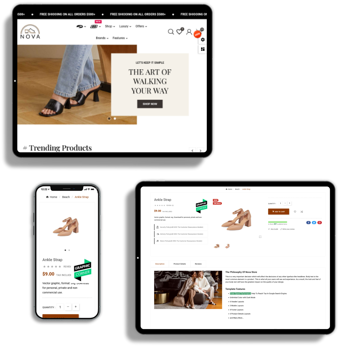 NOVA STORE is fully responsive, adapt the device size, pixel perfect and all elements look beautiful in all standard and Retina devices and resolutions.