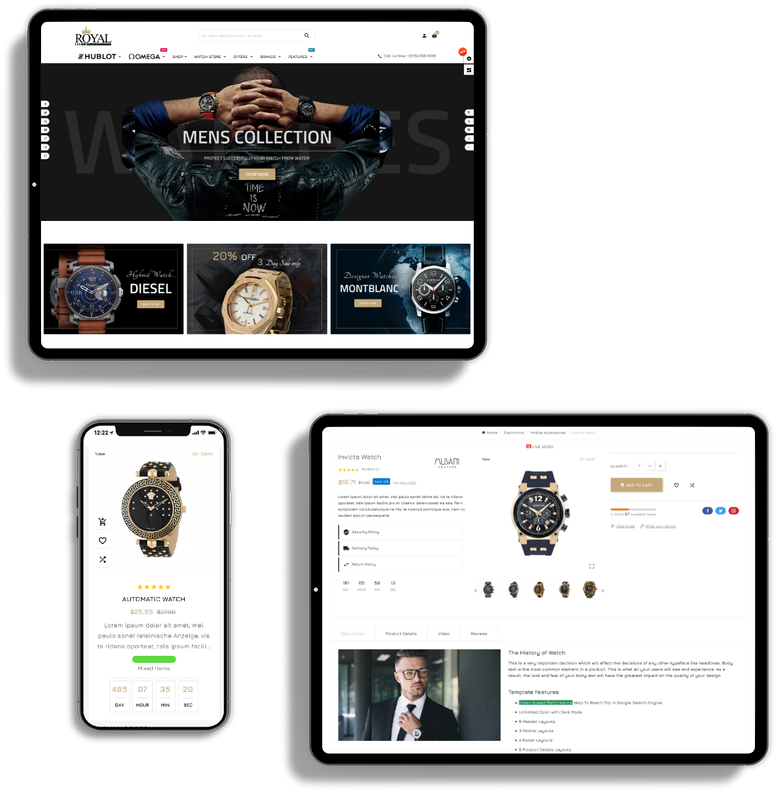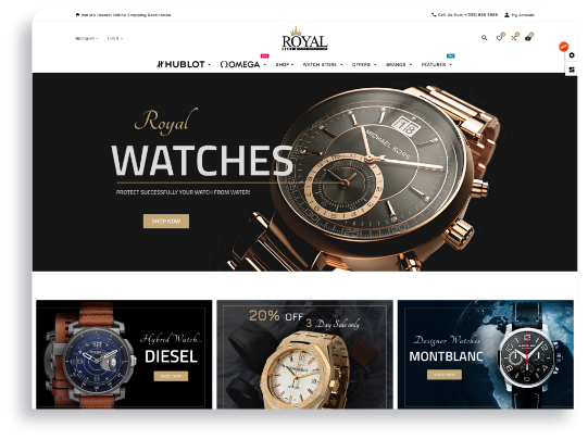 Here is Rich type of features that we used in ROYAL WATCH. See and check out what you get with our Templates.