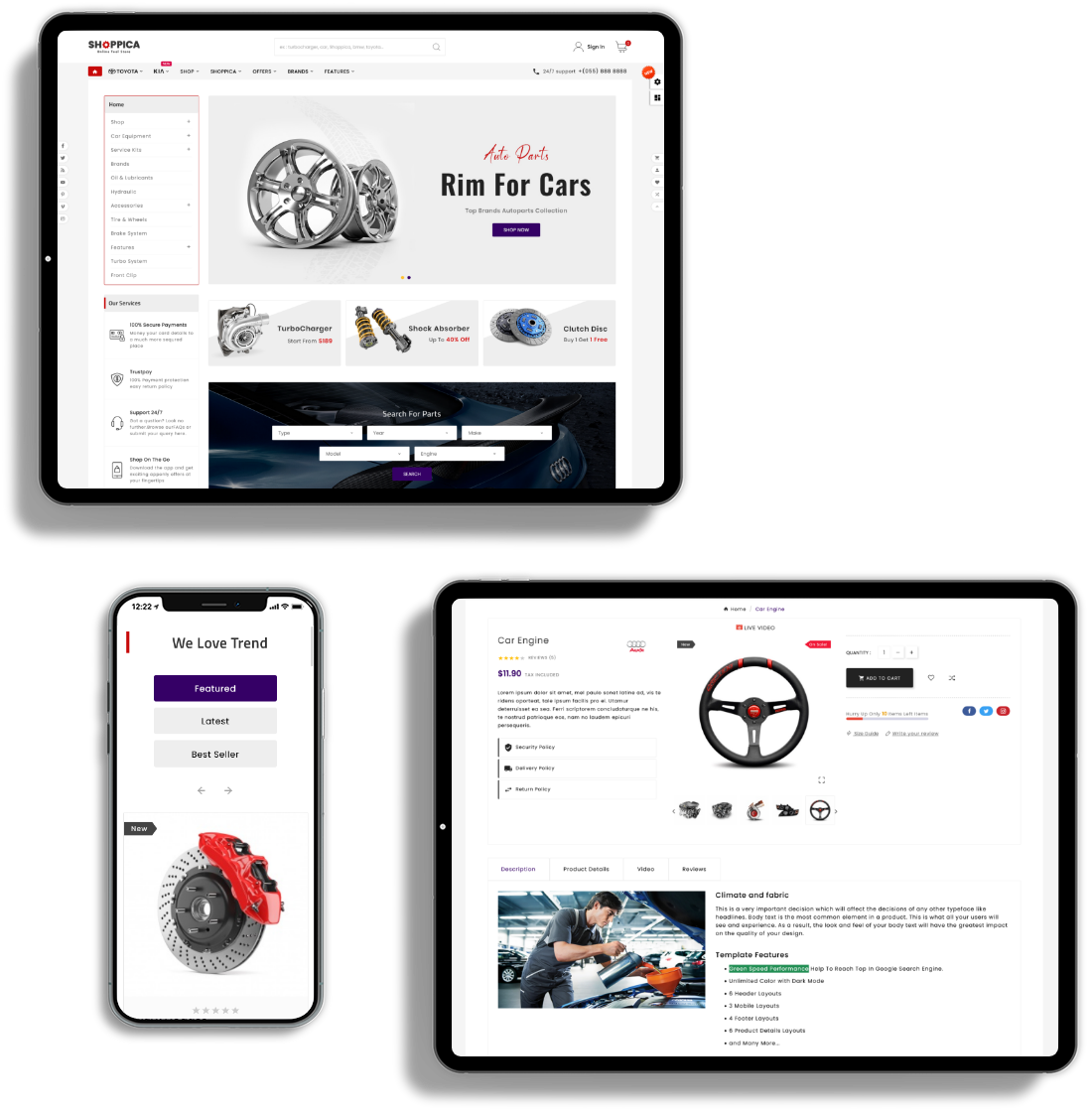 Here is Rich type of features that we used in SHOPPICA. See and check out what you get with our Templates.